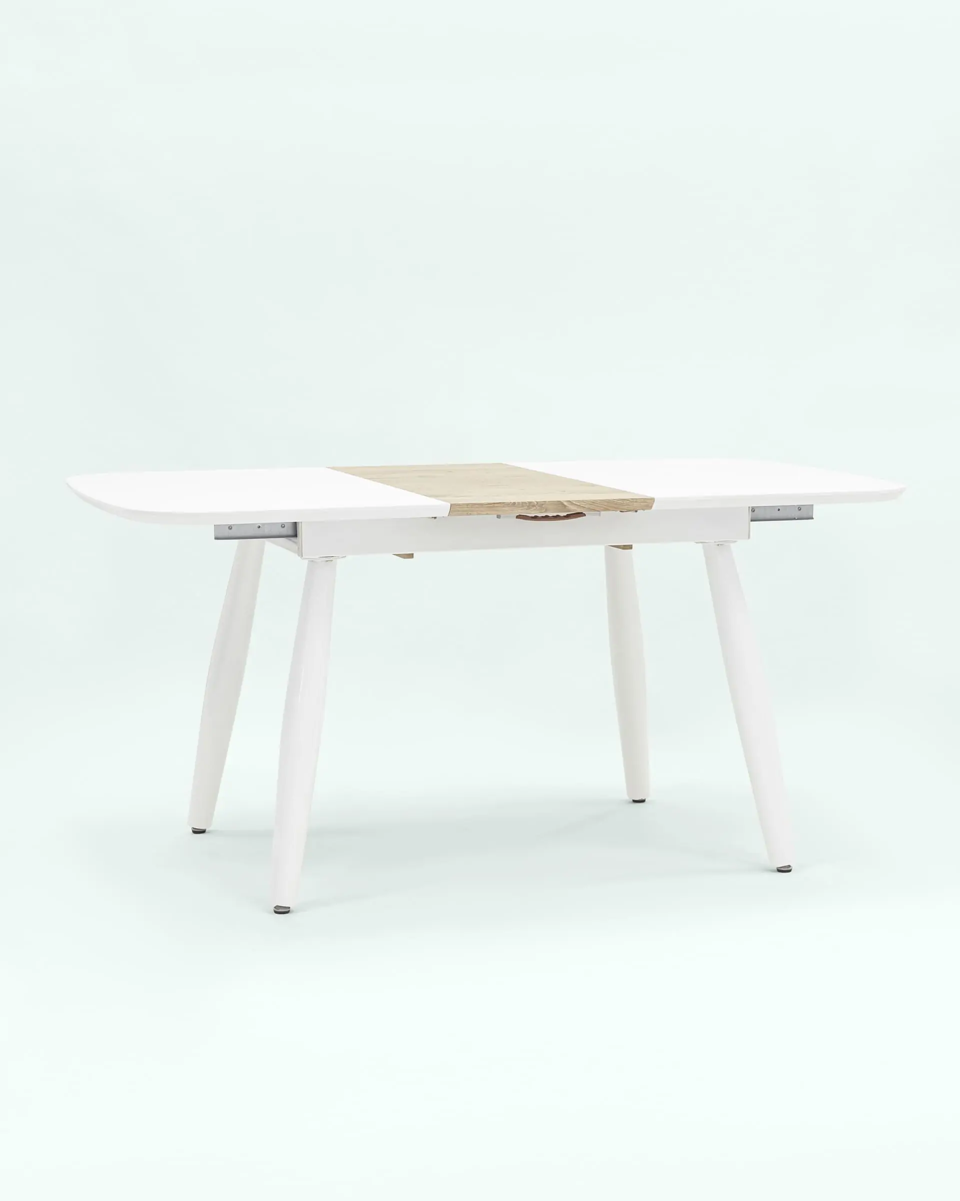 Дополнительная вкладка стола выполнена из МДФ с бумажным шпоном цвета беленого дуба. На вкладке предусмотрена петля для комфортного открытия стола одной рукой.