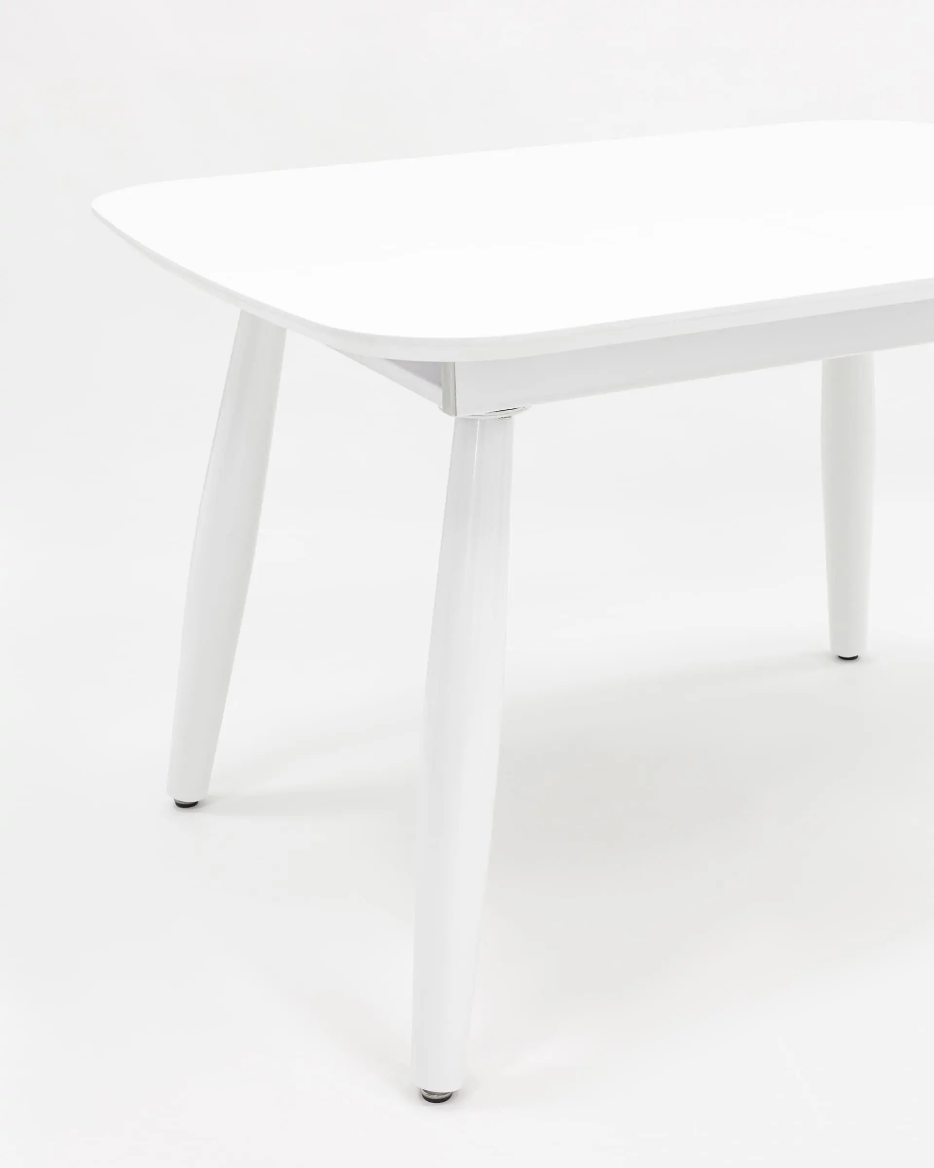 Столешница выполнена из прочного и долговечного МДФ. Светлая глянцевая поверхность столешницы гармонично сочетается с металлическими ножками. Простая прямоугольная форма стола позволит легко вписать его в современный интерьер, стол украсит кухню, гостиную или современное кафе, ресторан.